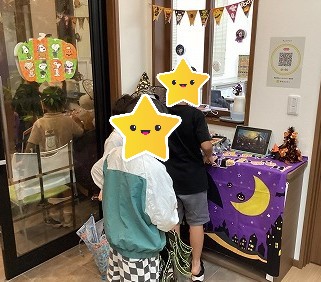 近隣児童の交流支援として今年もハロウィンを開催しました。あいにく雨でしたが20名ほど近隣の子供たちが「トリックオアトリート」「おやつをくれないといたずらしちゃうぞ」とかわいらくしやって来てくれました。あわてんぼうのサンタクロースも訪れて楽しいハロウィンになりました。
